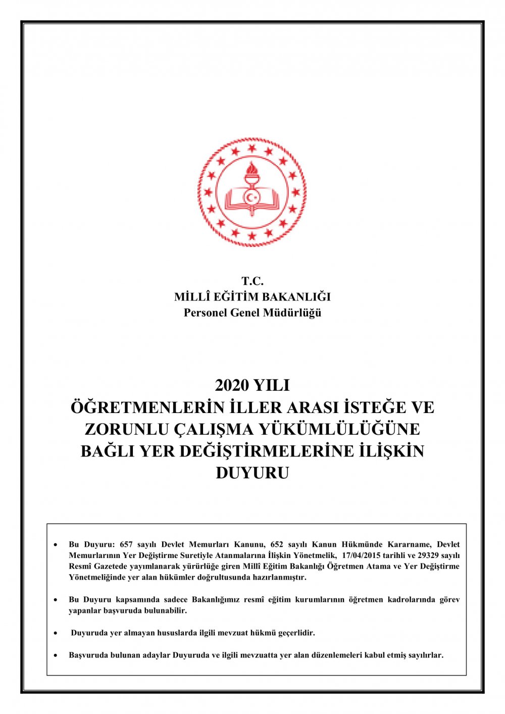 2019 Ogretmenlerin Il Ici Yer Degistirme Kilavuzu Yayinlandi Tikla Indir